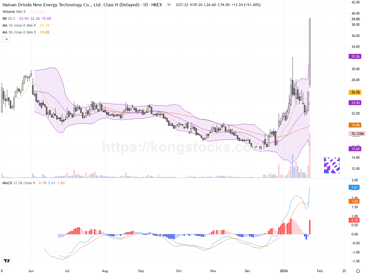 鈞達股份(02865.HK)於近日股價大幅飆升,最新收報39港元,較前收盤價25.38港元暴漲約51.4%。這波強力上升主要受到近期市場資金追捧,以及企業基本面利好消息推動,激發市場投資者信心,成交量明顯放大至7213萬股,顯示多頭氣勢凌厲。