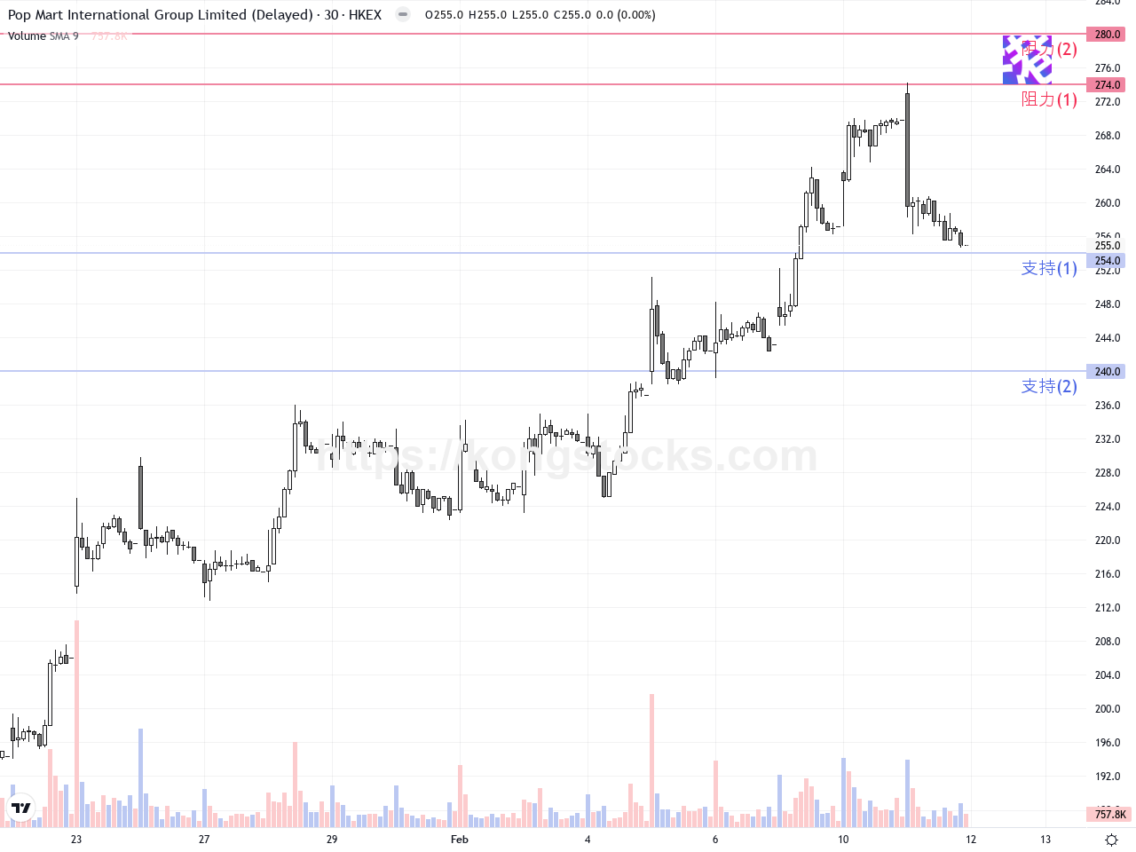 泡泡瑪特股價調整,短線技術面待觀察