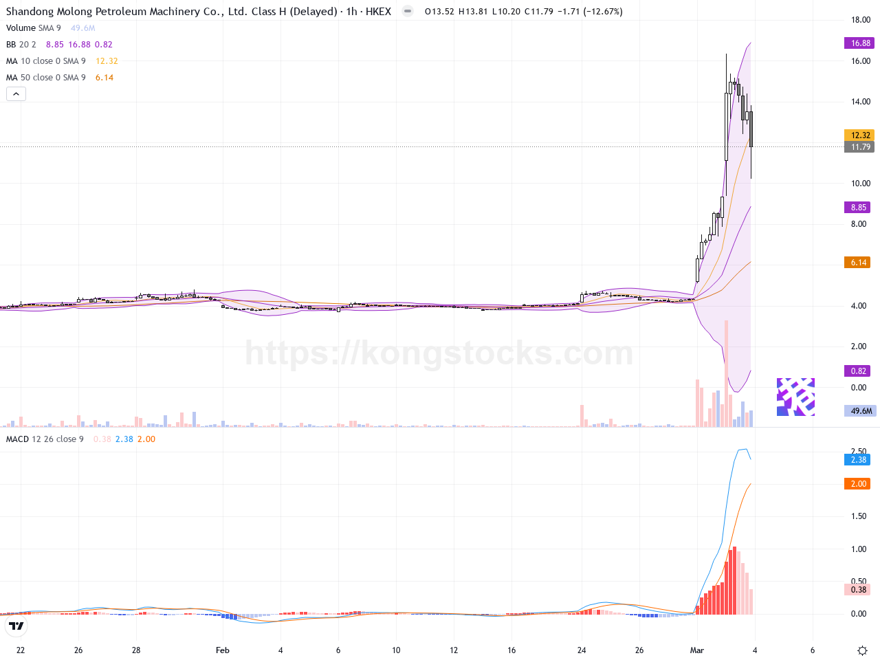 山東墨龍(00568.HK)近日成交異常活躍,最新股價大幅上漲至11.79港元,較前收盤價3.89港元漲幅高達約203%,成交量激增。消息指出,市場出現大手買入39.64萬股,成交價12.71港元,推動股價急速飆升。油服板塊繼續走強,受國際油價高企影響,相關股紛紛爆升,帶動山東墨龍股價強勁反彈。