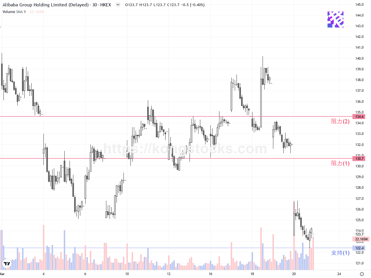 阿里巴巴股價大挫逾6%,技術面短期承壓待反彈