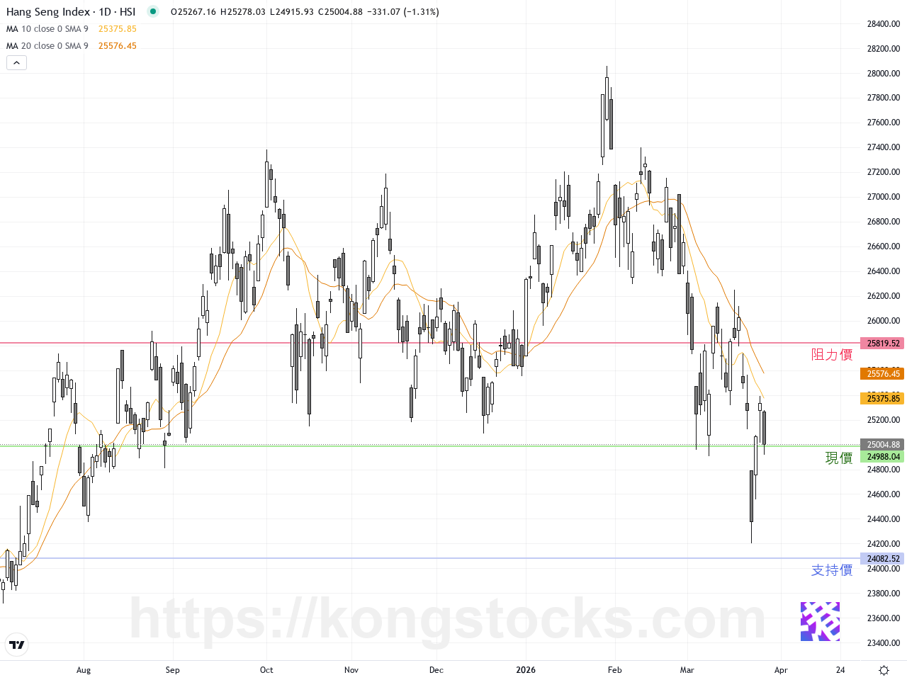 – 觀察恆指能否站穩25000點以上以確認多頭續航力